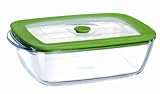 Plat rectangulaire PYREX 4 en 1 Plus en verre, avec couvercle étanche. Couvercle translucide avec valve à vapeur. Capacité : 1.1 L. Dimensions : 21x21 cm. Ne pas utiliser le couvercle en cuisson.